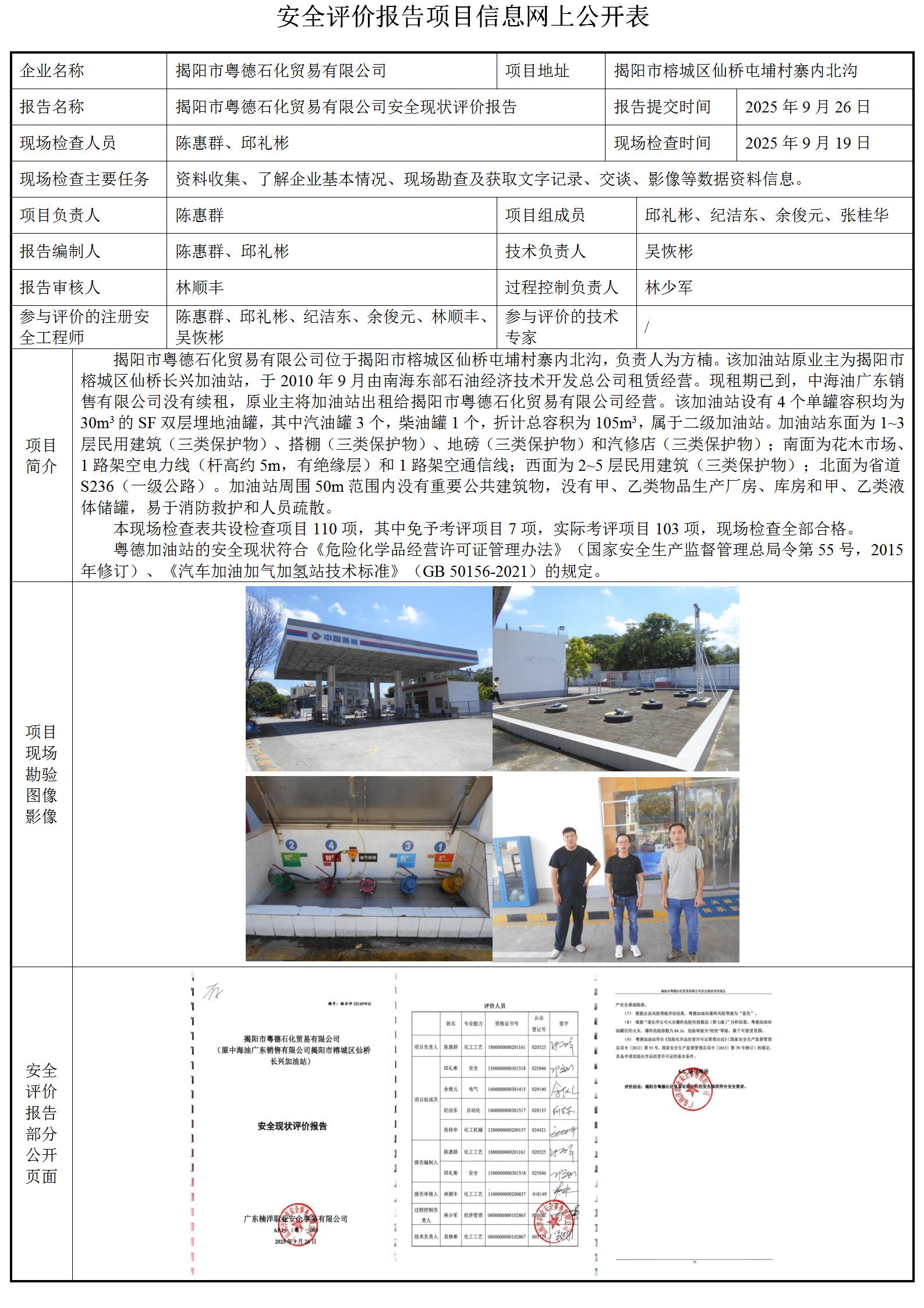 中山市中安能源有限公司汕头龙湖金津加油站安全现状评价