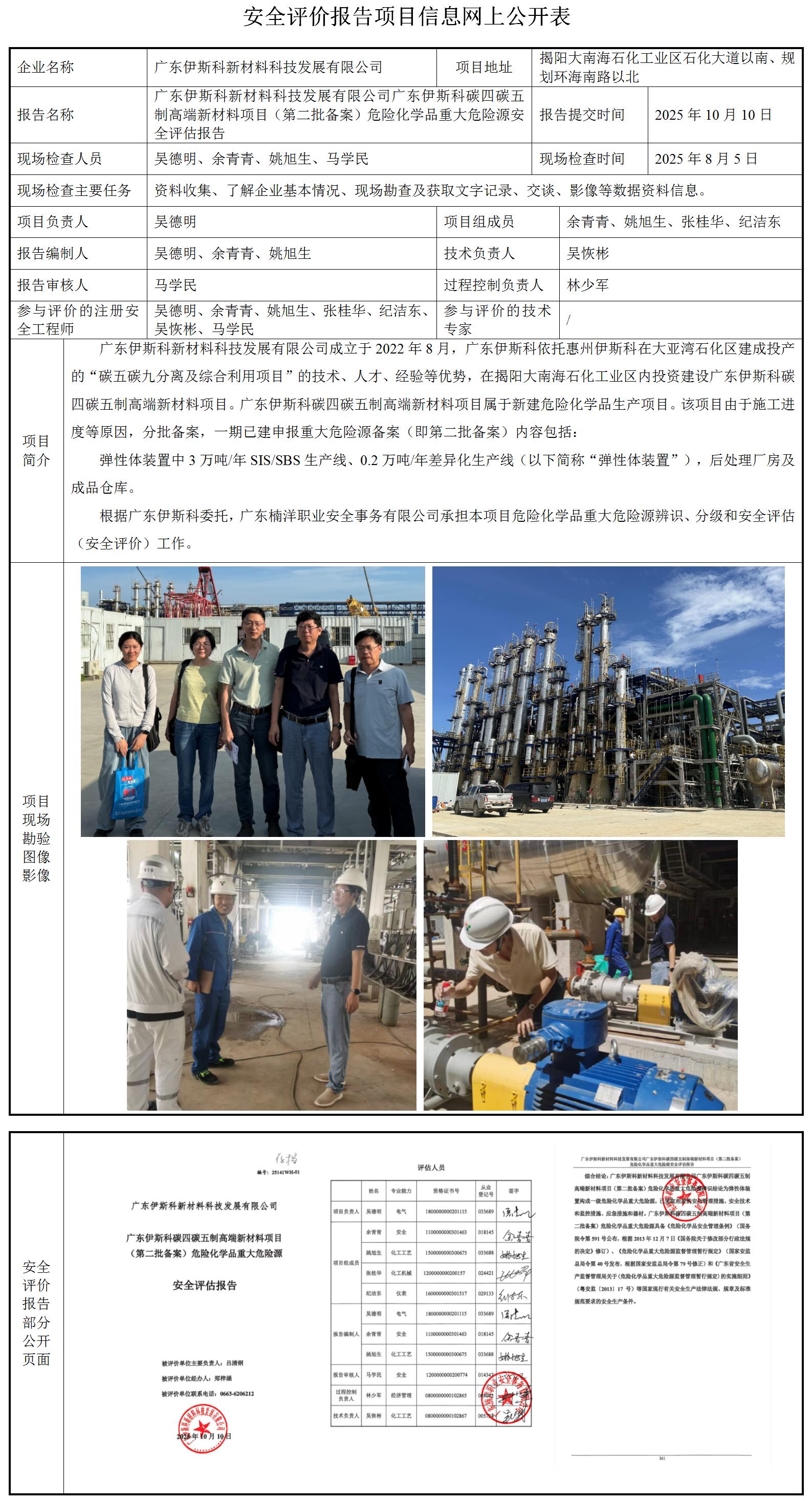 广东伊斯科新材料科技发展有限公司广东伊斯科碳四碳五制高端新材料项目(第二批备案)试生产(使用)前安全检查