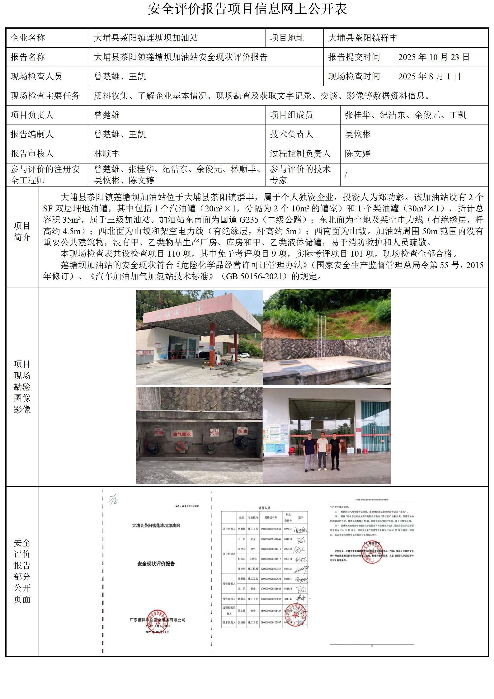 大埔县茶阳镇莲塘坝加油站安全现状评价