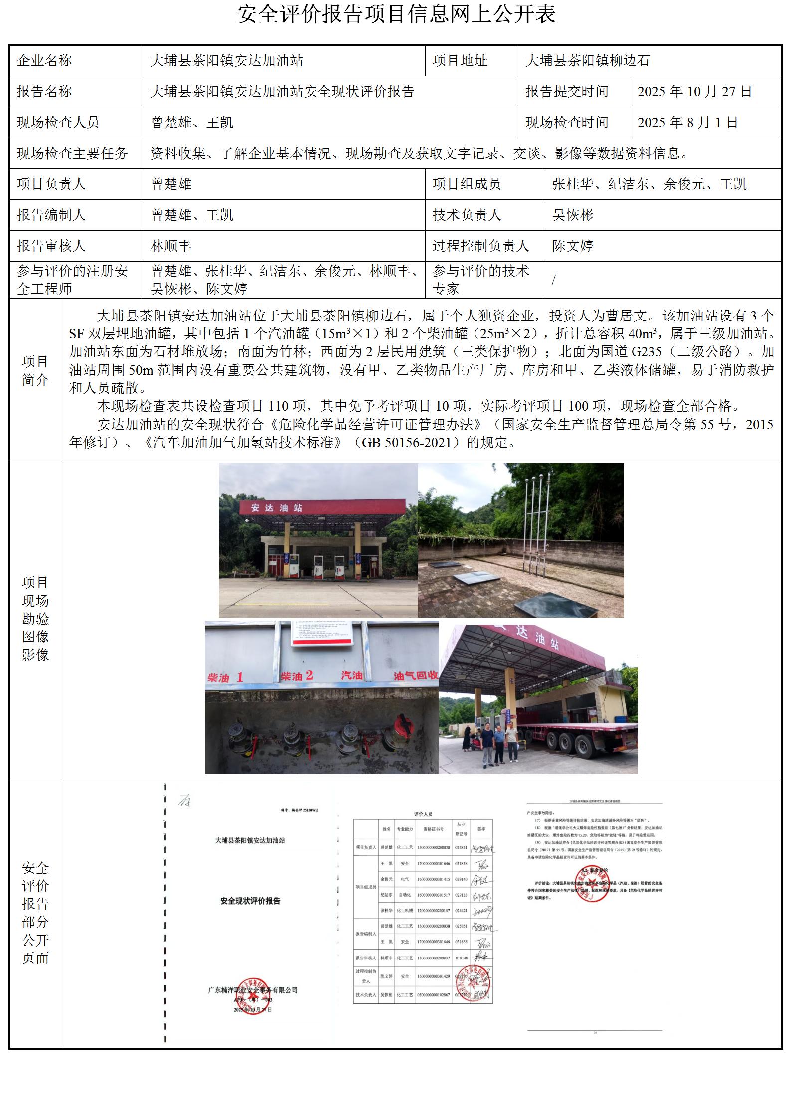大埔县茶阳镇安达加油站安全现状评价