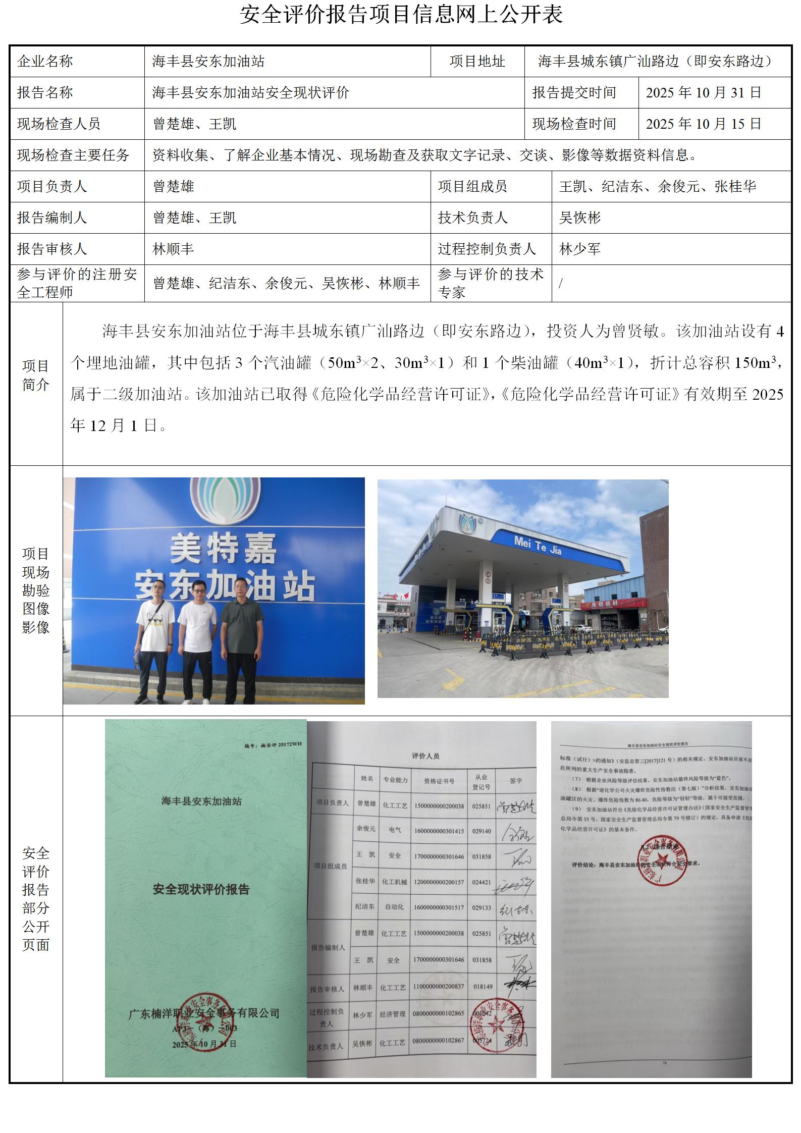 汕头市雄盛能源投资有限公司白池洋加油站新建项目安全设施竣工验收安全评价
