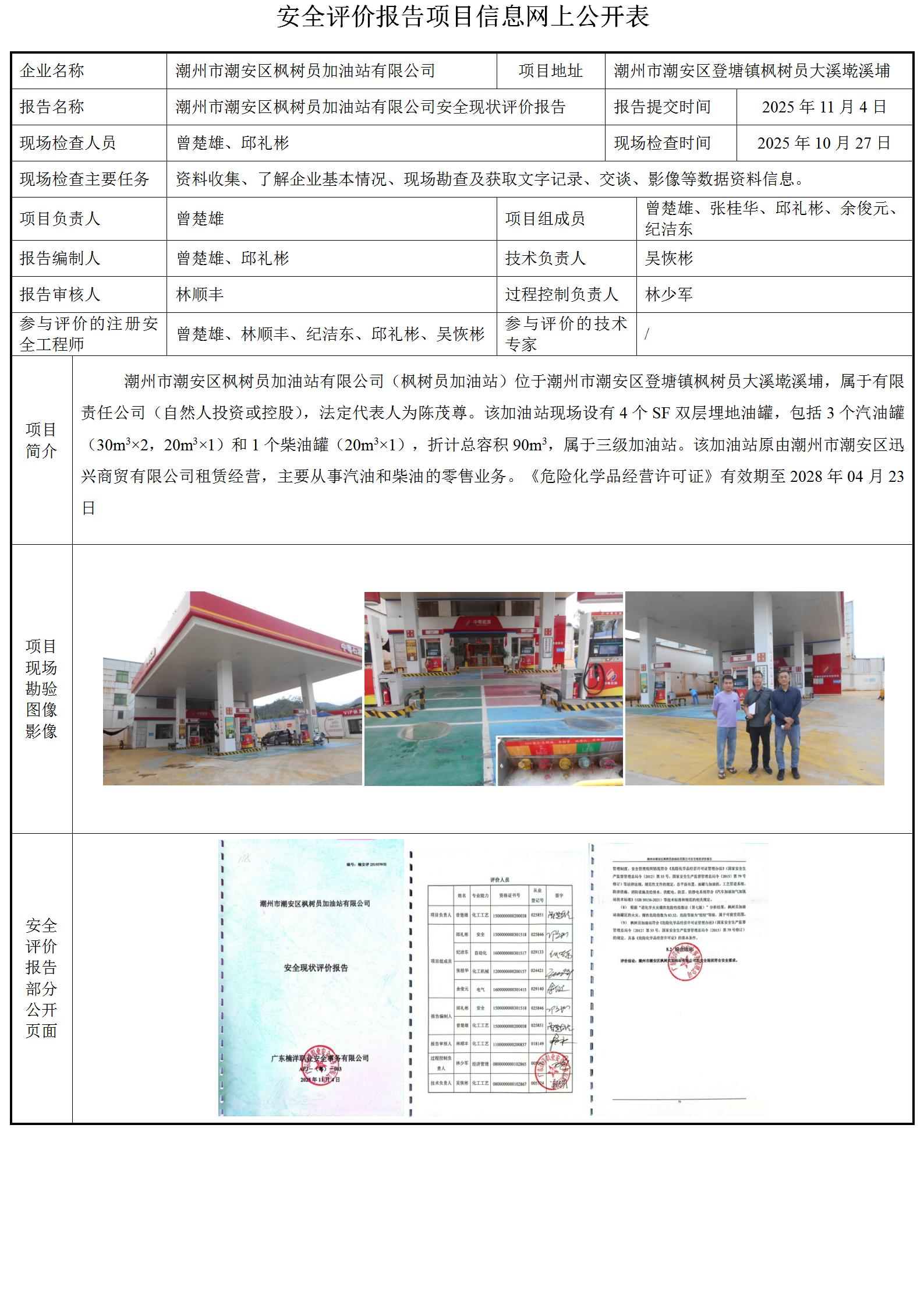 潮州市潮安区枫树员加油站有限公司安全现状评价