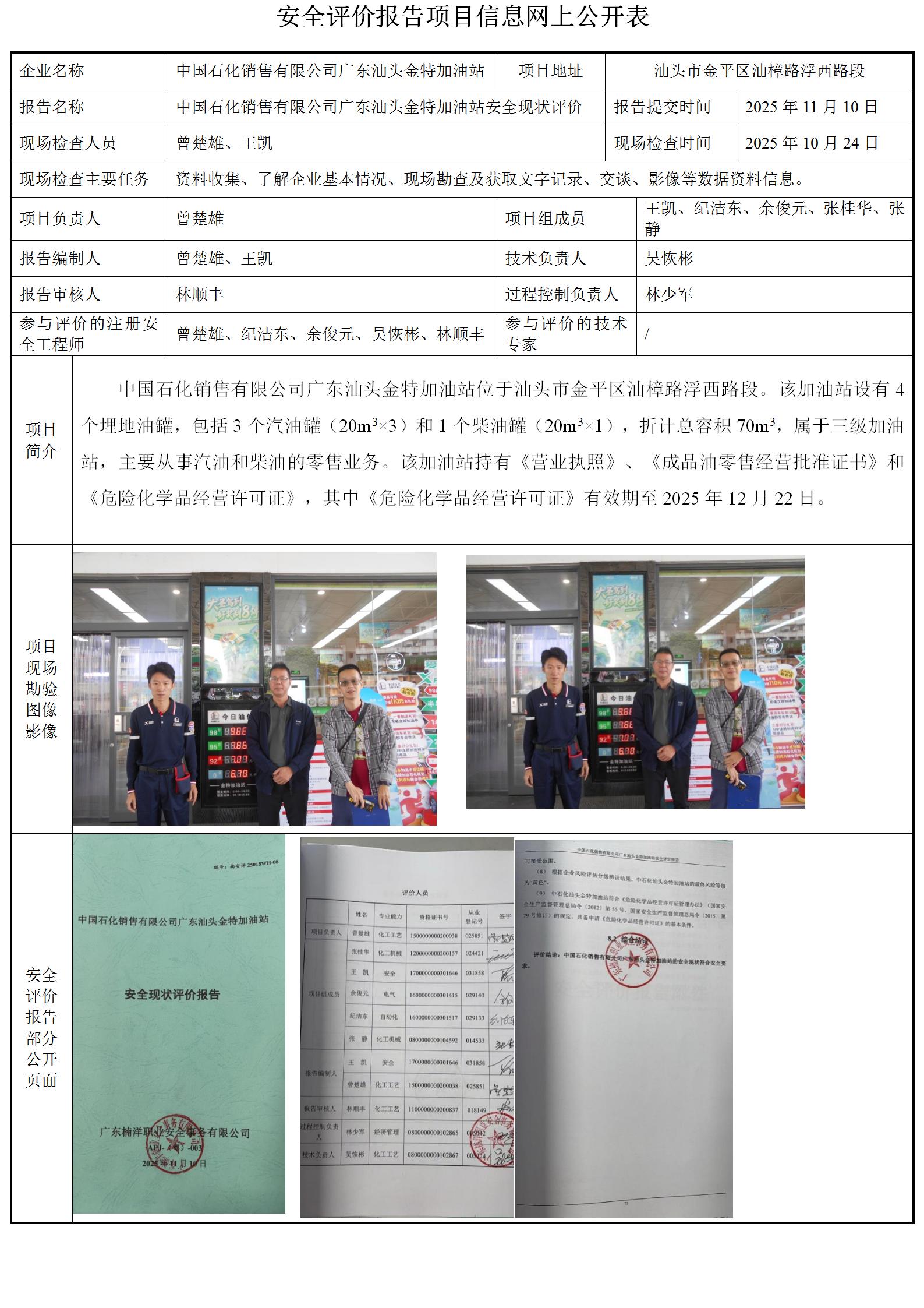 中国石化销售有限公司广东汕头金特加油站安全现状评价