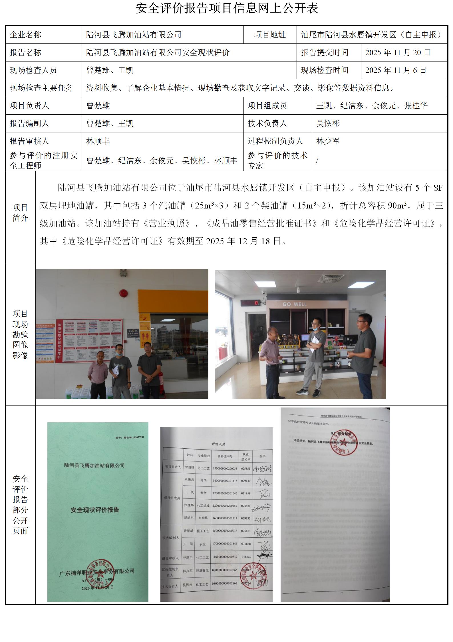 陆河县飞腾加油站有限公司安全现状评价
