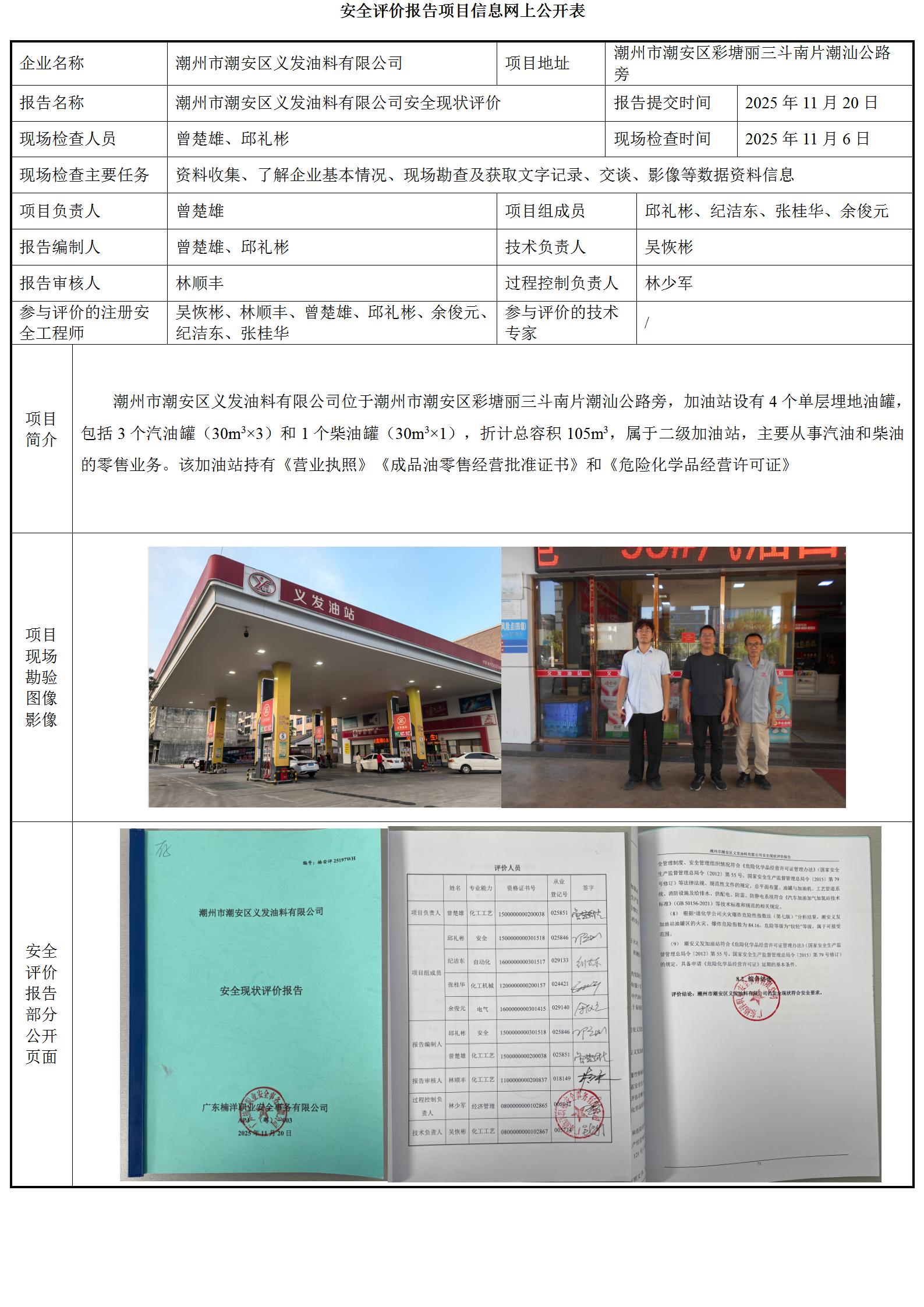 潮州市潮安区义发油料有限公司安全现状评价