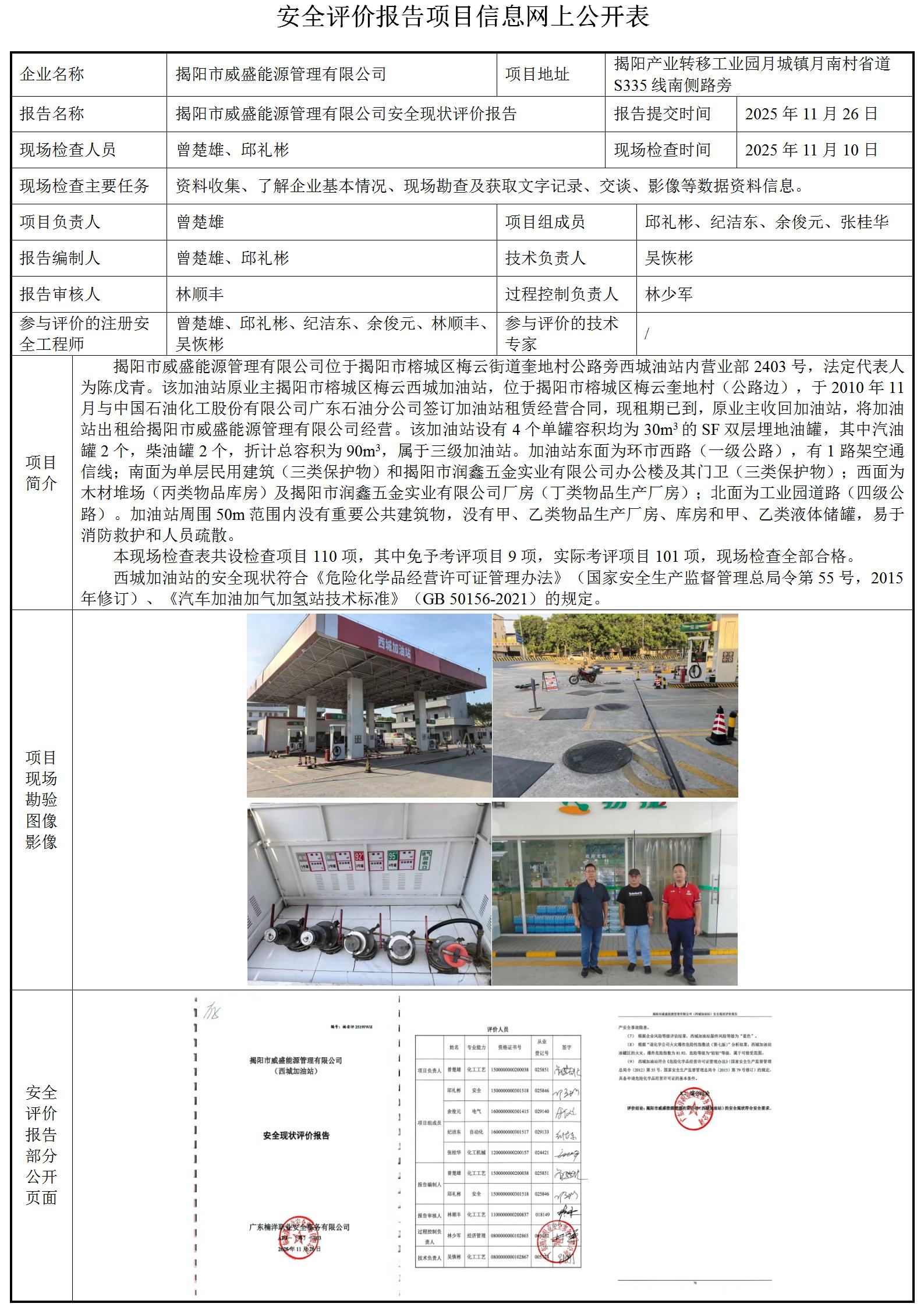 揭阳市威盛能源管理有限公司安全现状评价