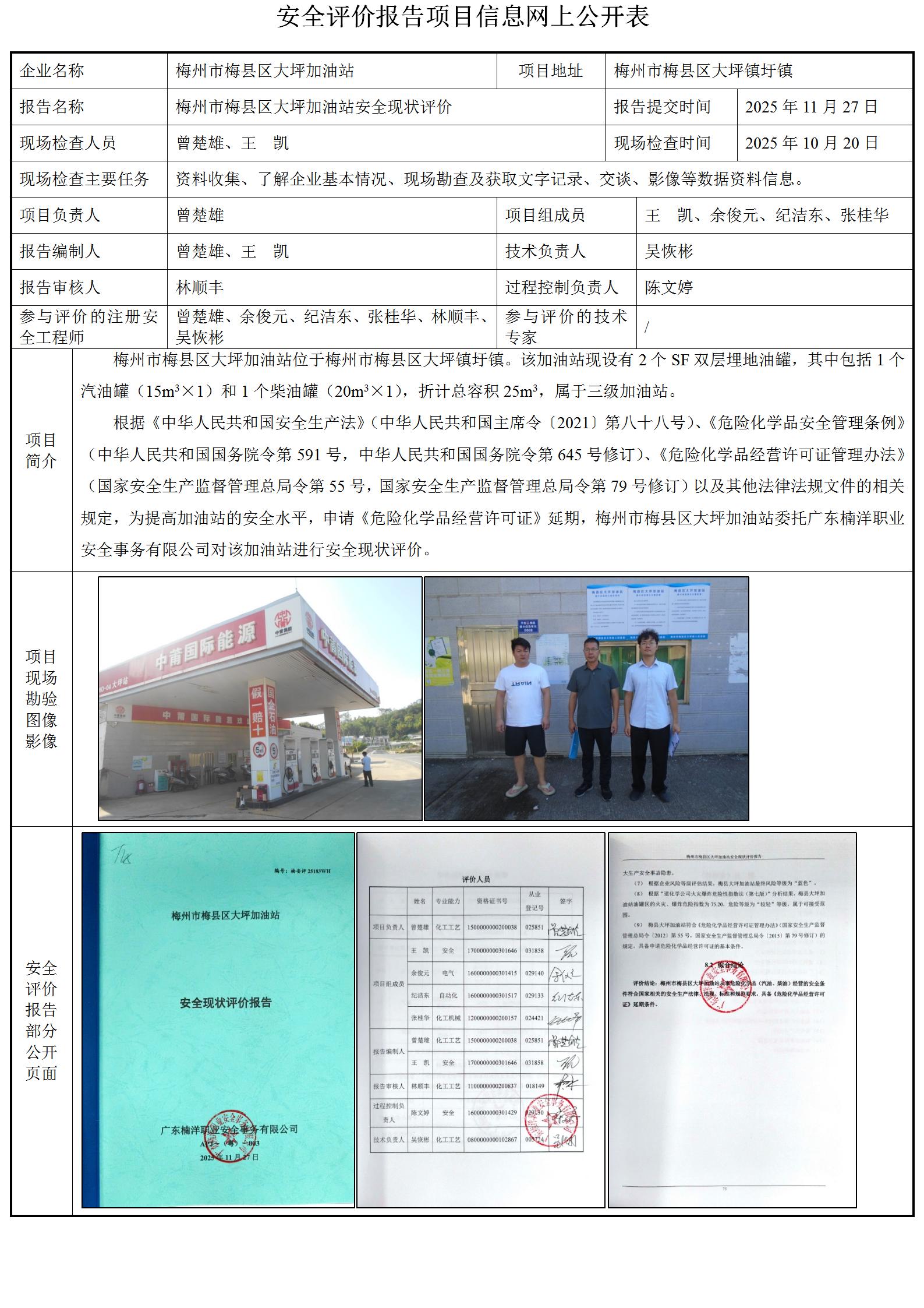 梅州市梅县区大坪加油站安全现状评价