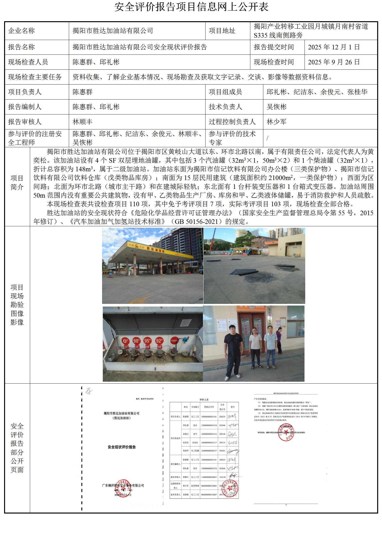 揭阳市胜达加油站有限公司(胜达加油站)安全现状评价