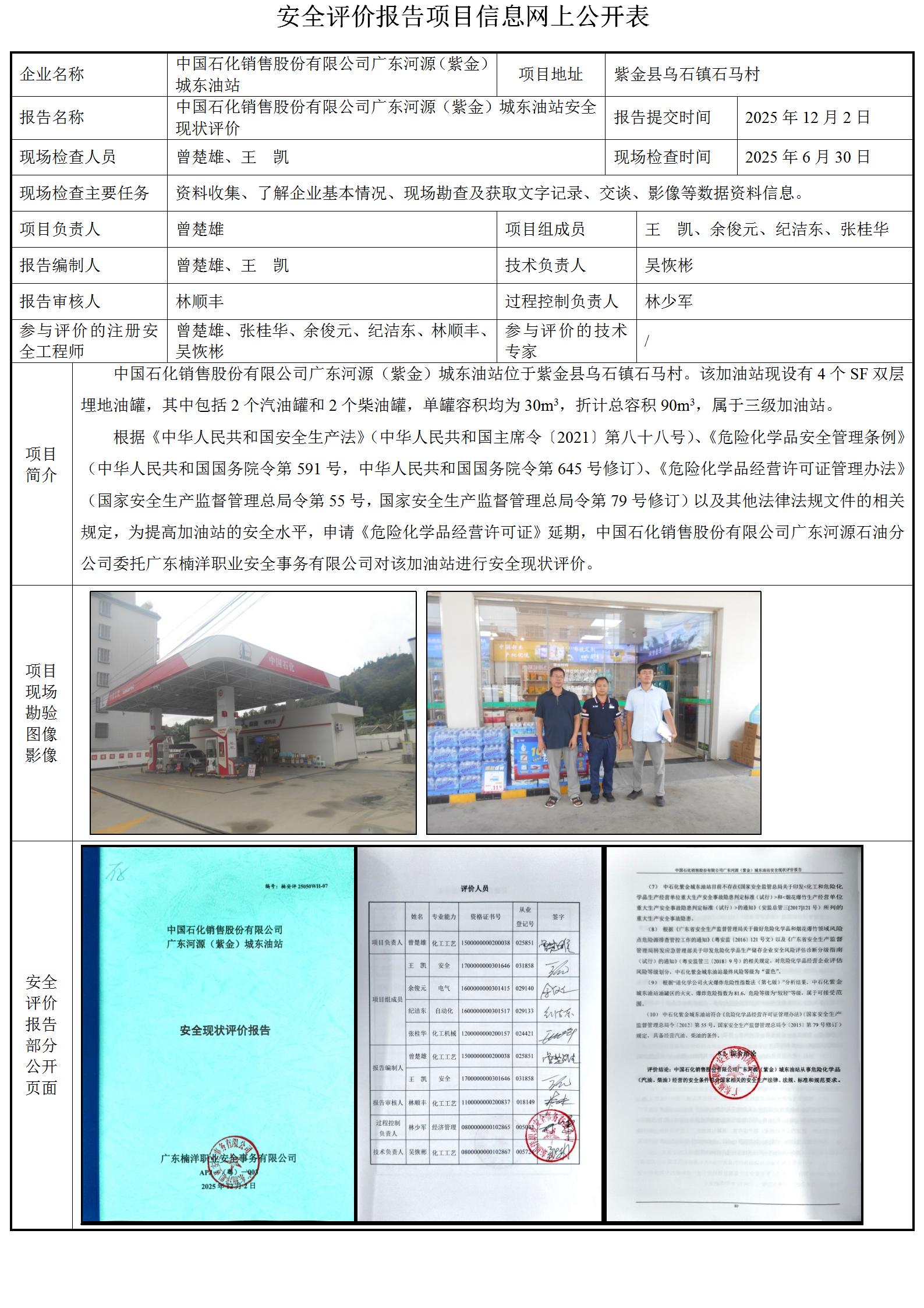 中国石化销售股份有限公司广东河源(紫金)城东油站安全现状评价