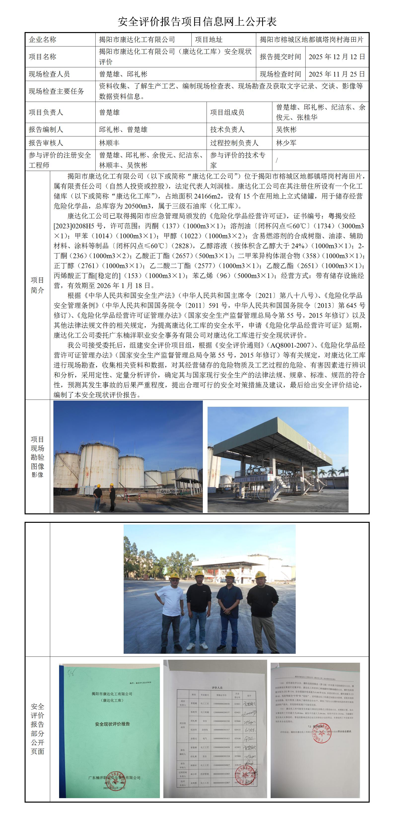 揭阳市康达化工有限公司(康达化工库)安全现状评价