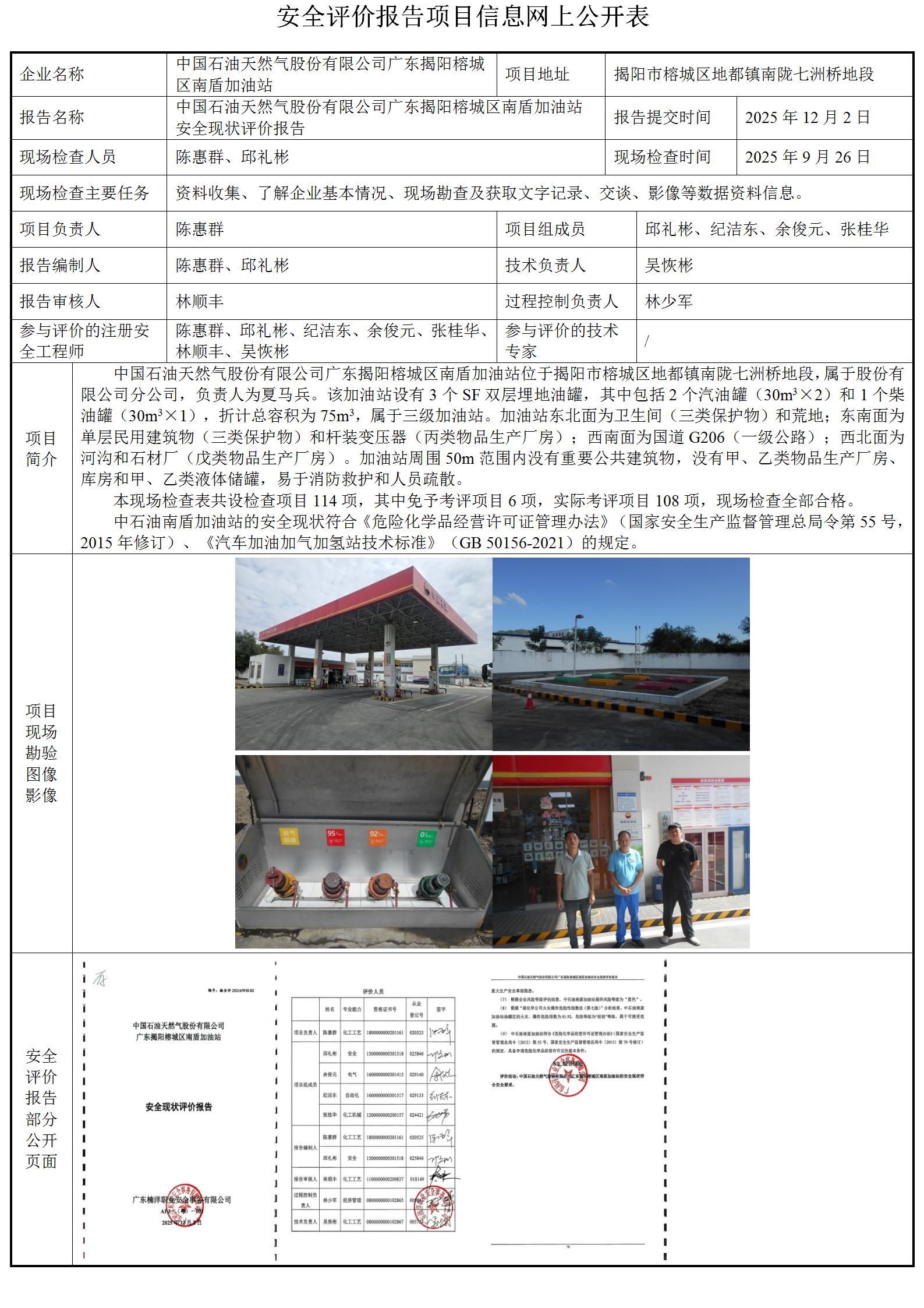 中国石油天然气股份有限公司广东揭阳榕城区南盾加油站安全现状评价