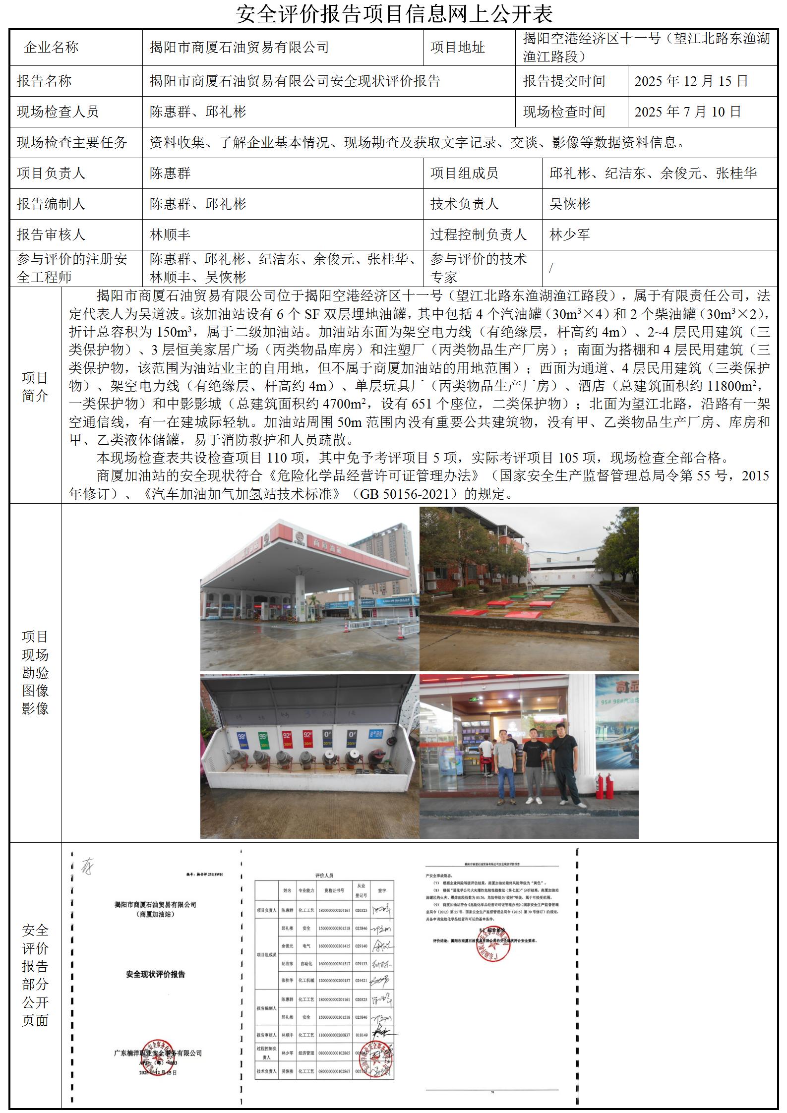 揭阳市商厦石油贸易有限公司(商厦加油站)安全现状评价