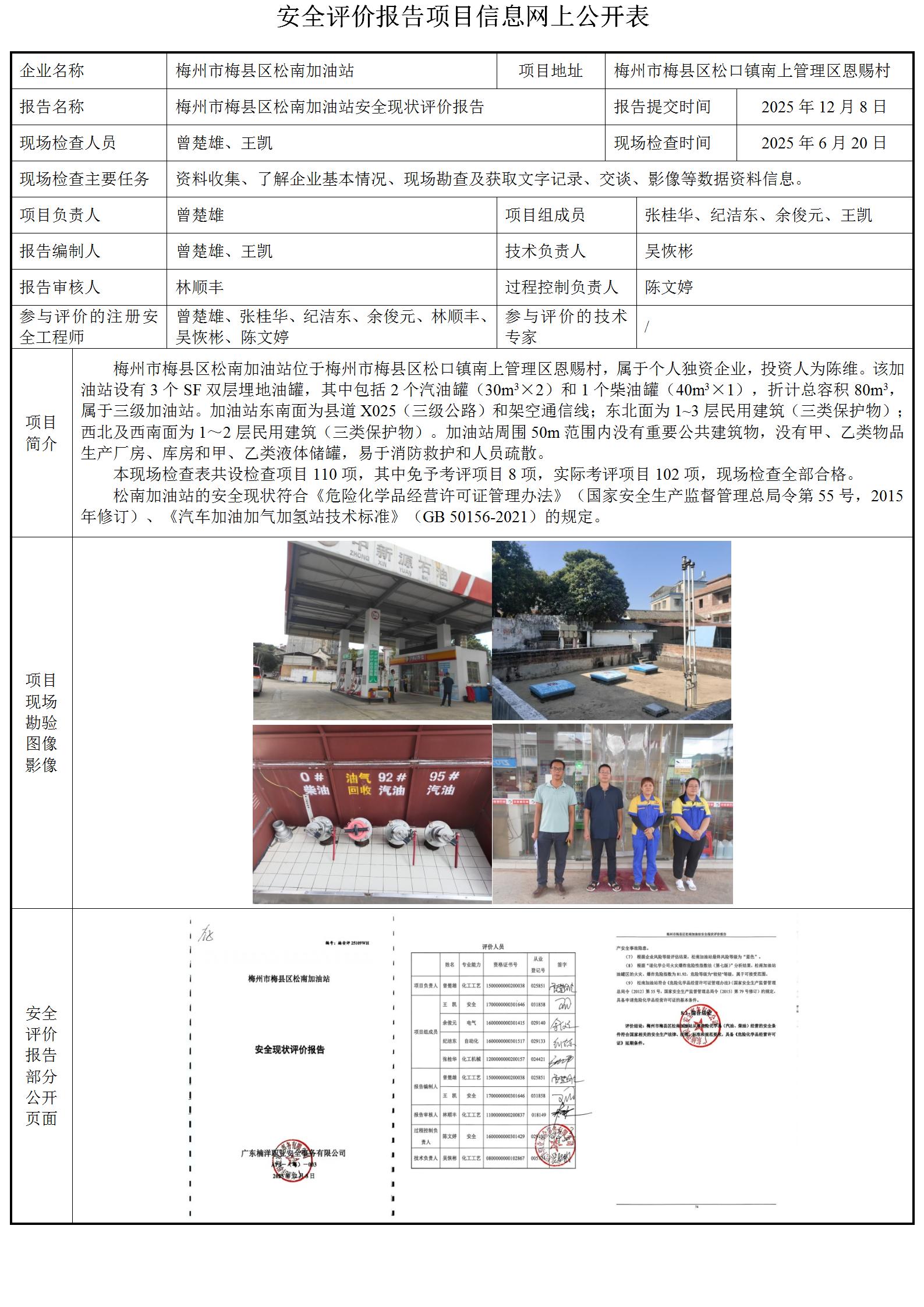 中国石化销售股份有限公司广东梅州五华华新加油站安全现状评价