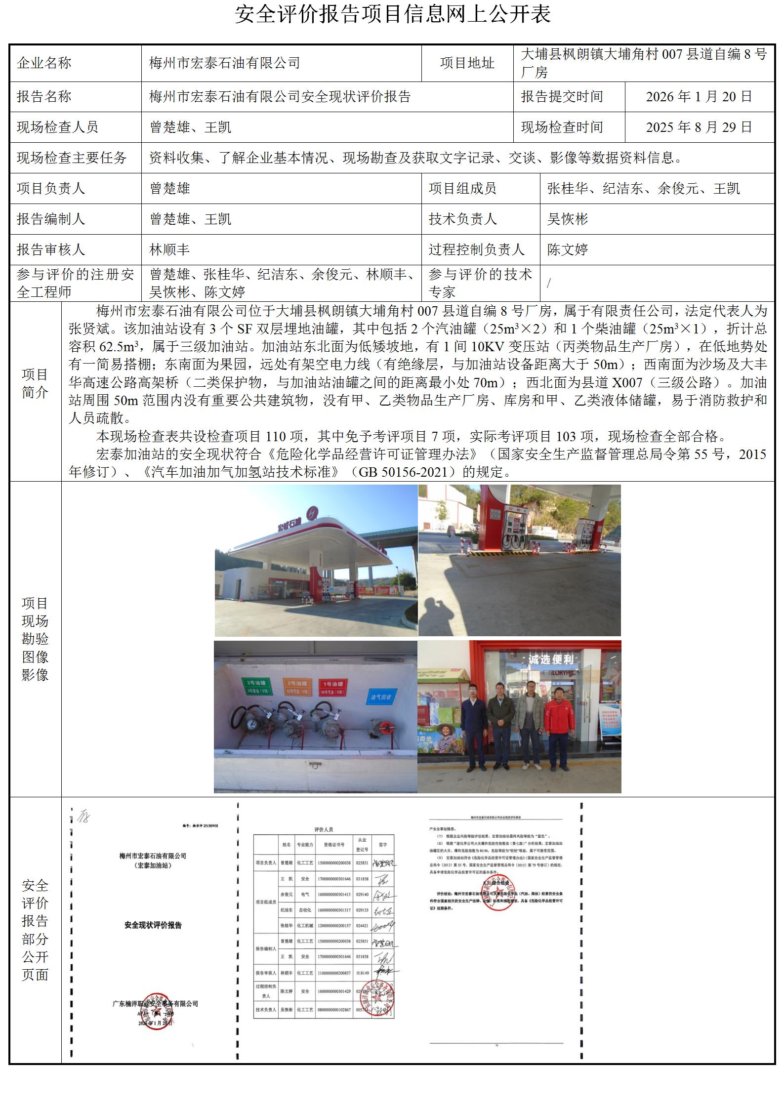 梅州市宏泰石油有限公司(宏泰加油站)安全现状评价