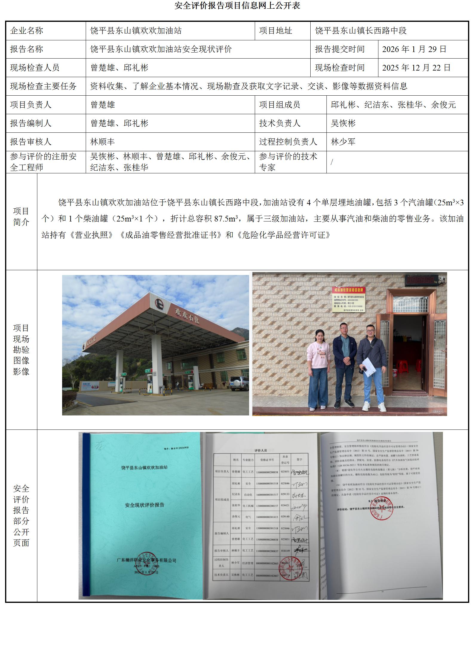中国石化销售股份有限公司广东梅州蕉岭新沙加油站安全现状评价