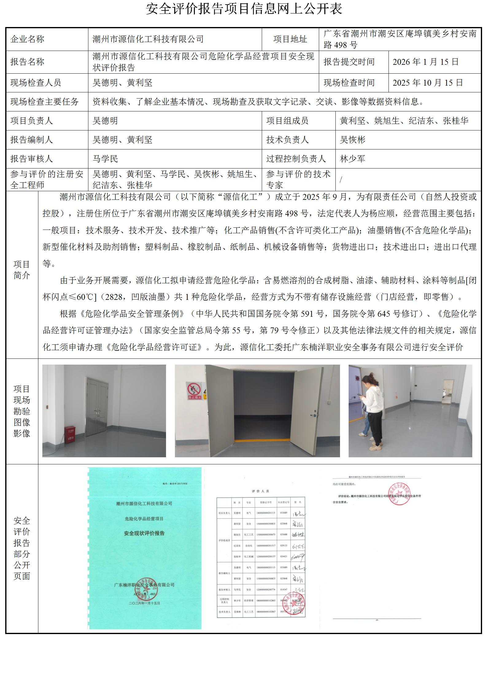 潮州市源信化工科技有限公司危险化学品经营项目安全现状评价