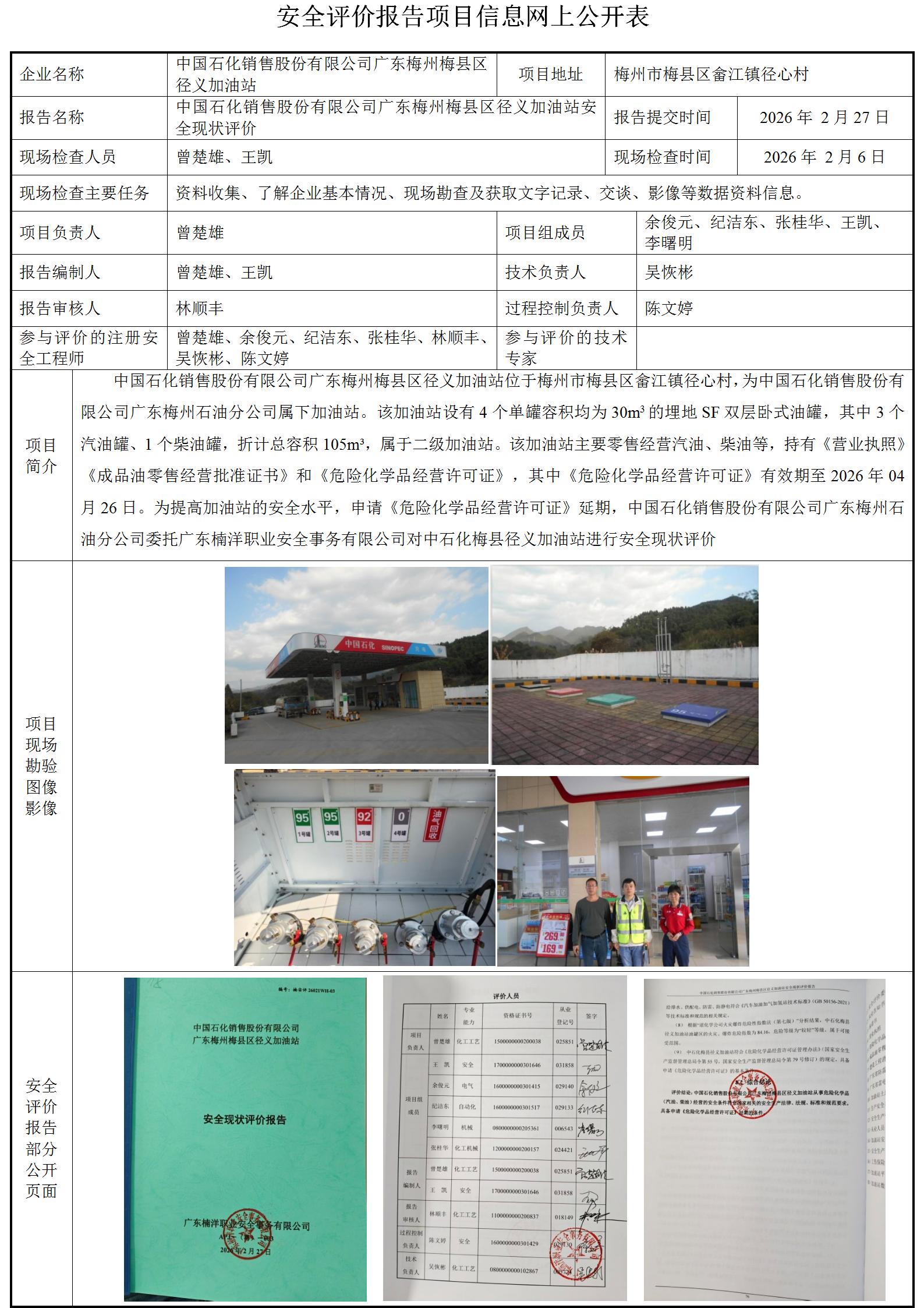 中国石化销售股份有限公司广东梅州梅县区径义加油站安全现状评价
