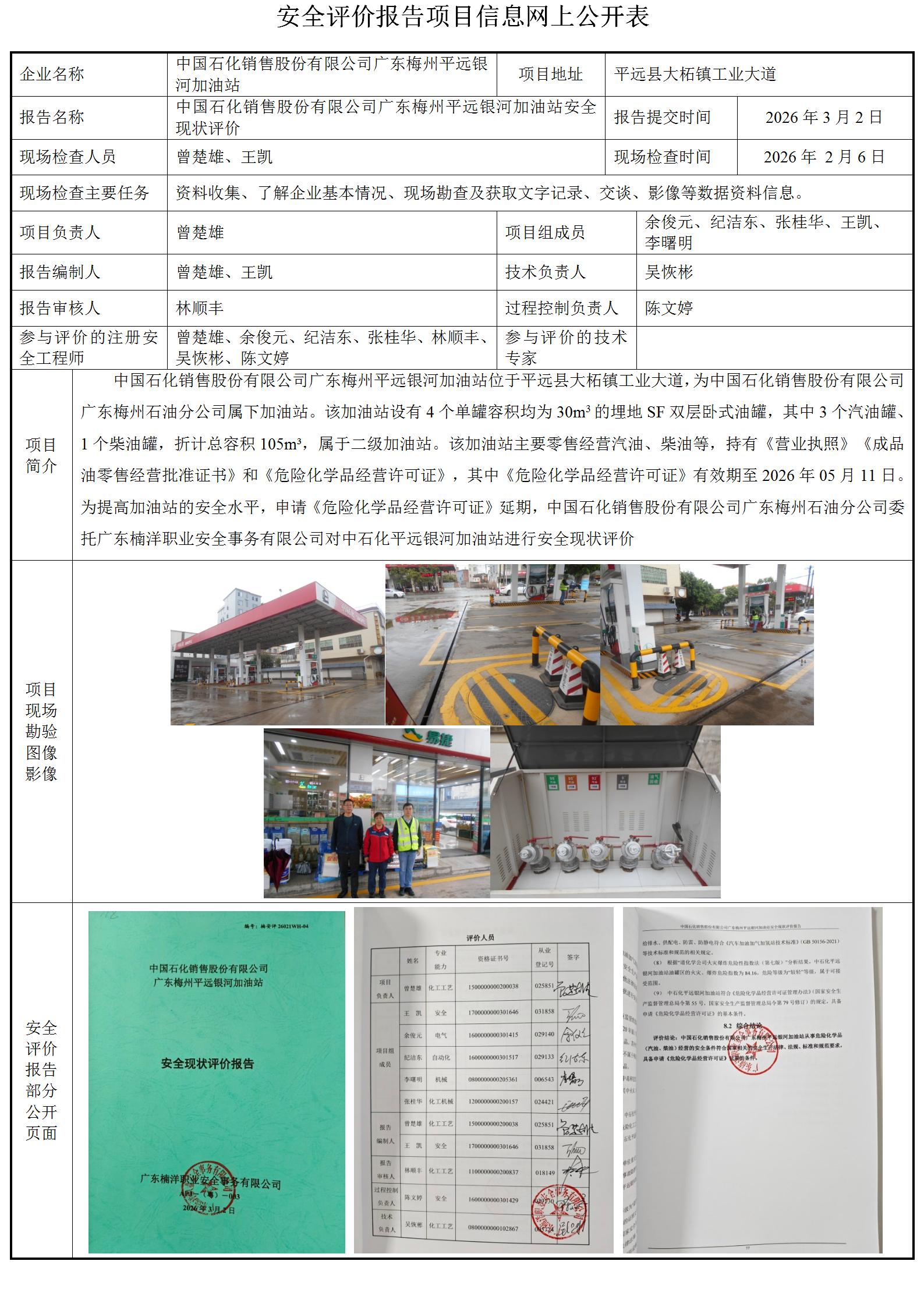 中国石化销售股份有限公司广东梅州平远银河加油站安全现状评价