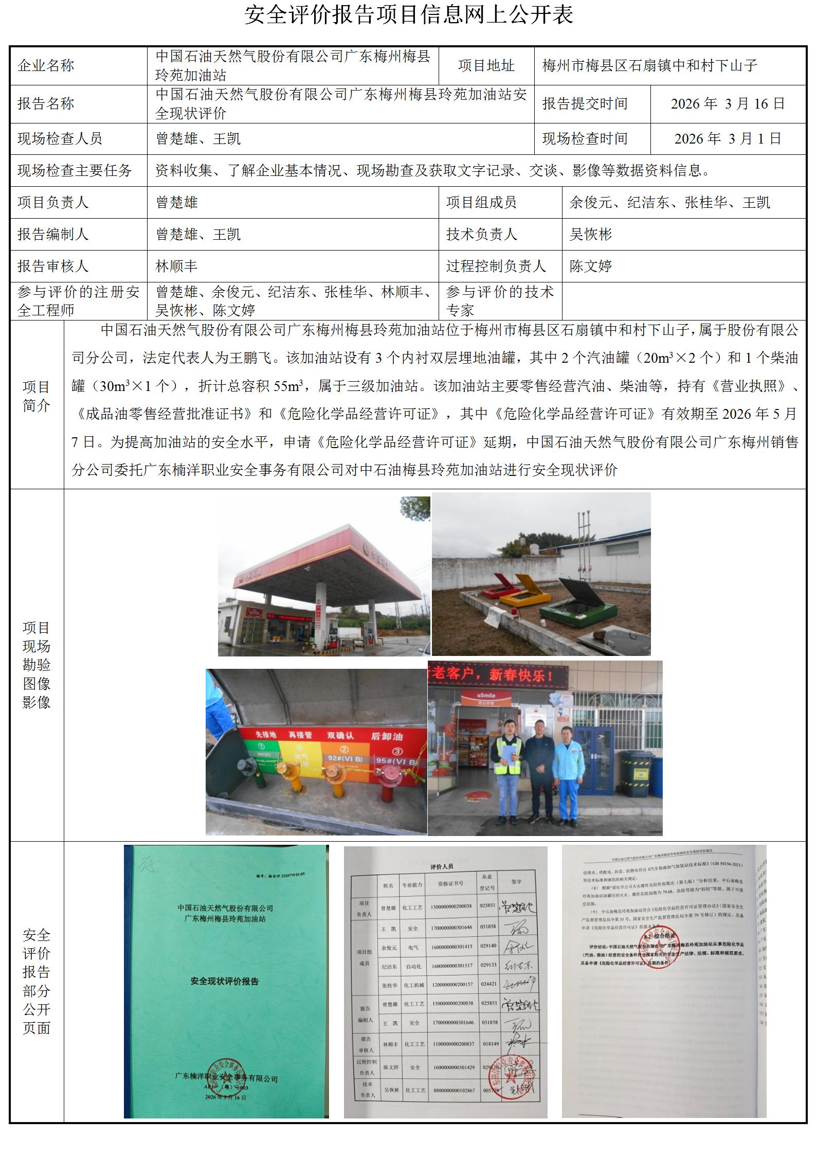 中国石油天然气股份有限公司广东梅州梅县玲苑加油站安全现状评价